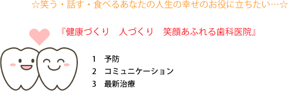 健康な人が訪れ、健康をともに喜び、確かめ合う、笑顔で会話ができる関係を目指します。