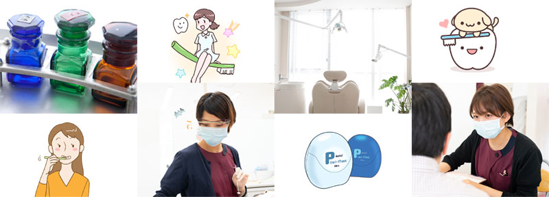 ⑦フロス ⑧仕上げ磨き ⑨検査結果の説明 ⑩ドクターチェック ⑪次回予約 以上の流れで約1時間行います。 |